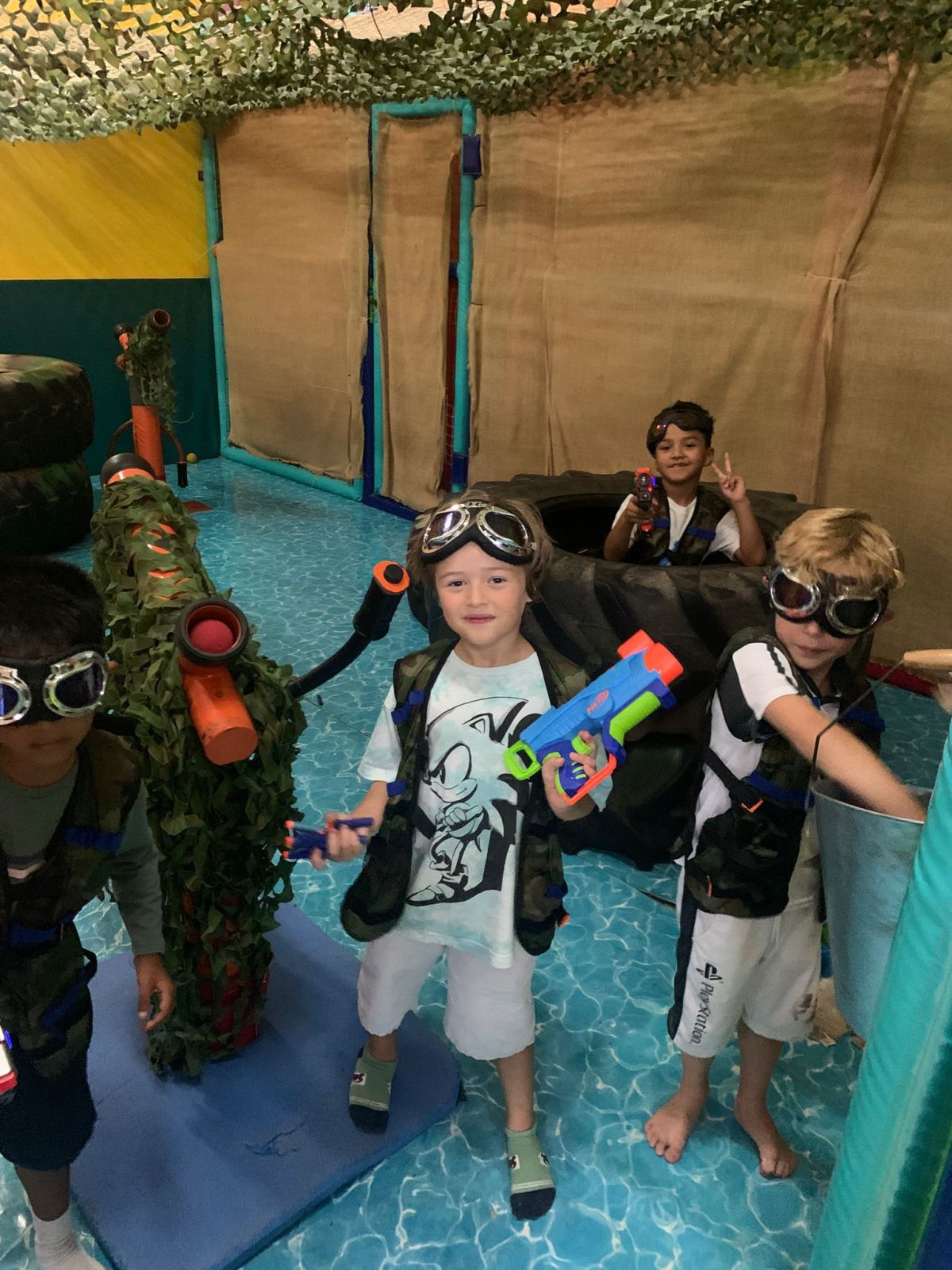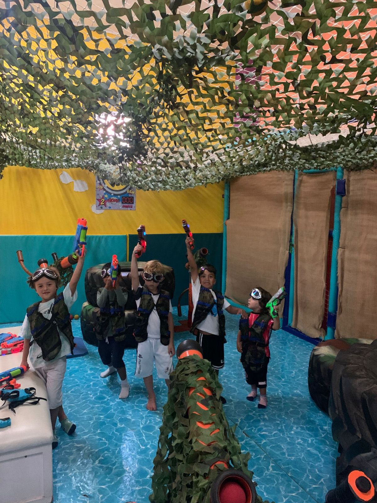 En un entorno seguro y controlado, los peques participan en divertidas partidas con pistolas Nerf de espuma, desarrollando la coordinación, la agilidad y el juego cooperativo, siempre adaptado a su edad.